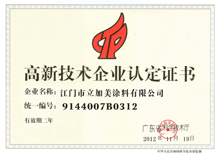 高新技术企业认定证书